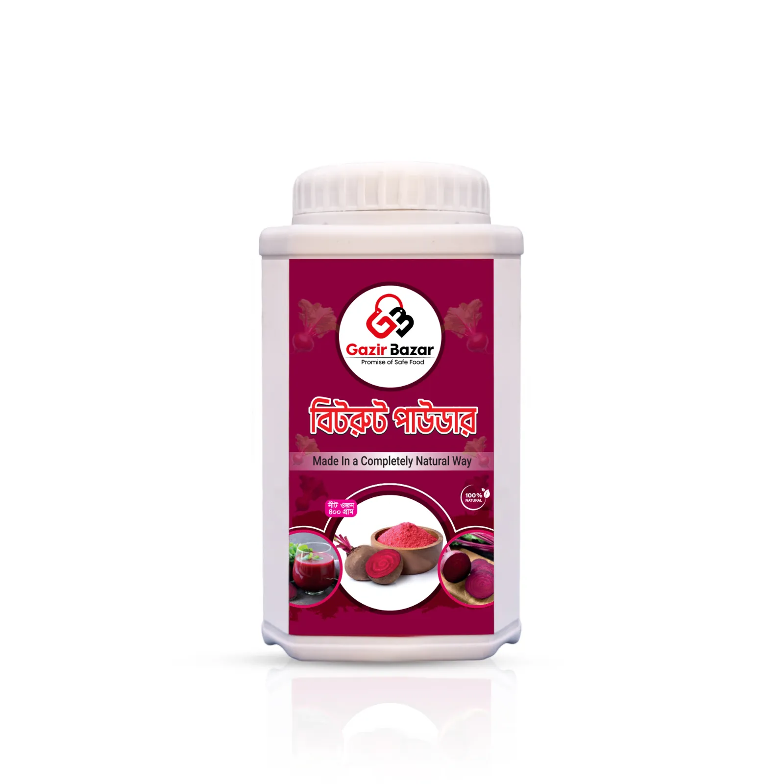 বিটরুট পাউডার (Beetroot Powder) হল প্রাকৃতিক বিট বা বিটরুট থেকে তৈরি করা এক ধরনের গুঁড়ো, যা বিটের পুষ্টিগুণ ধরে রাখে এবং সহজেই বিভিন্ন খাবারে যোগ করা যায়। প্রাকৃতিক পুষ্টিগুণে ভরপুর এই বিটরুট পাউডার আমাদের স্বাস্থ্য রক্ষায় নানা ভাবে সহায়ক। এতে ভিটামিন সি, আয়রন, ক্যালসিয়াম এবং অ্যান্টিঅক্সিডেন্ট থাকে, যা শরীরের রোগ প্রতিরোধ ক্ষমতা বৃদ্ধি করতে এবং বিভিন্ন শারীরিক ক্রিয়া সঠিক রাখতে সহায়ক।